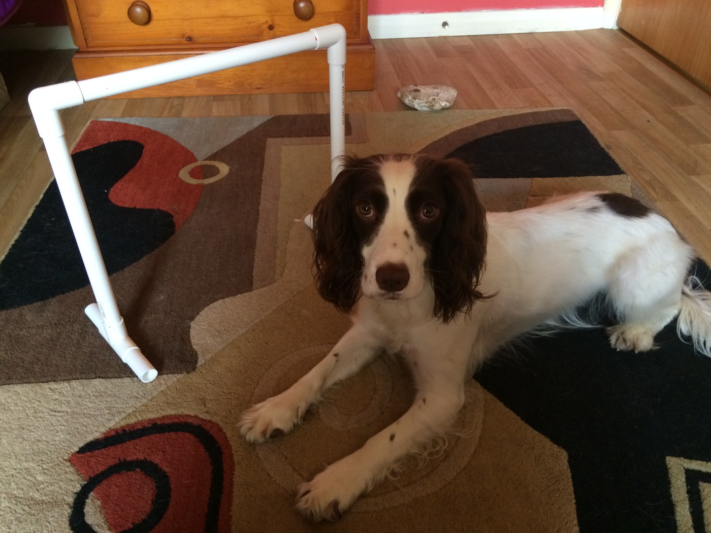 Because all organisations have slight variations in their heights, giving set measurements for this project would be impractical, so I will explain how you can adjust the hoop to suit your requirements. The hoop pictured is set for the Kennel Club small height (35cm).