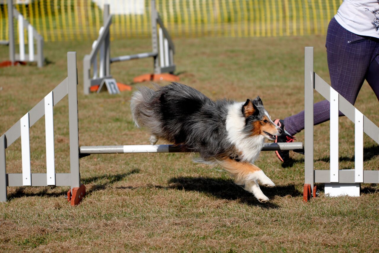 The second course involved push rounds. I was trying to tighten Merlin’s turns and was pleased with his ketschkers as I remembered to drive him into them. I tried the push rounds two ways. The first time I sent him around the left wing of the jump straight after the tunnel, the second time I sent him around the right wing, which gave me time to get into position for the next sequence.
